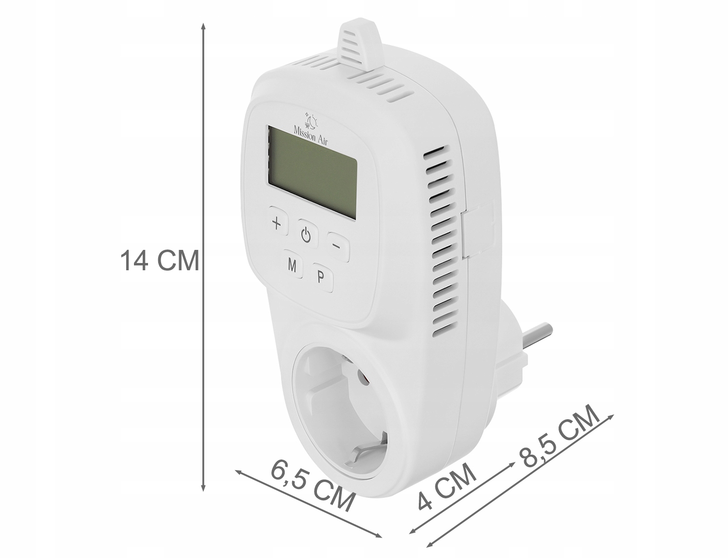 - 140 × 65 × 40 mm (višina/širina/globina) Krmilnik je standardno opremljen z vtičem tipa F. Priloženo krmilniku Priložen je adapter iz F vtiča na standardni E vtič.