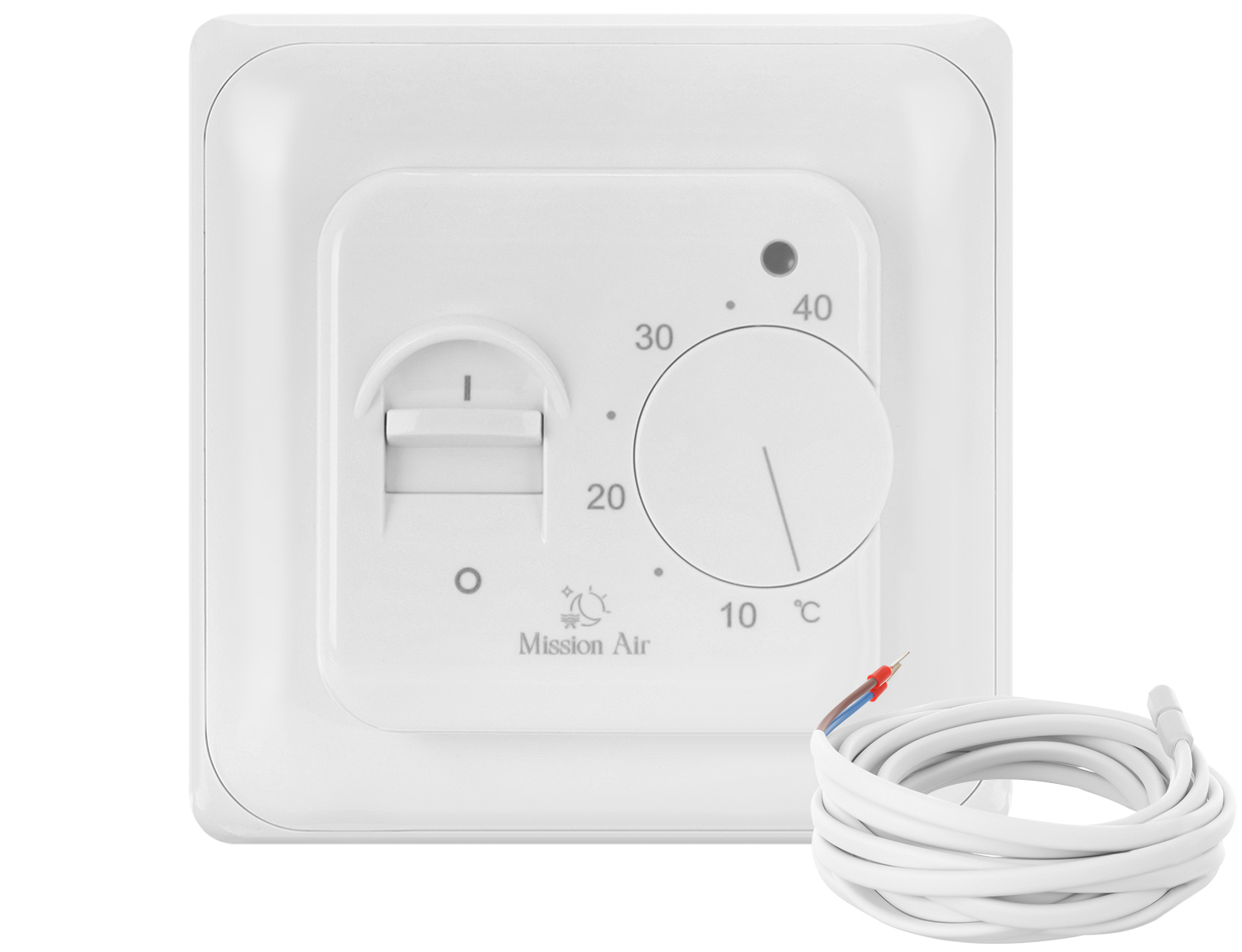 • LED diodo, ki prikazuje stanje delovanja naprave in sveti rdeče, ko je ogrevanje vklopljeno, dokler ni dosežena želena temperatura tal.
