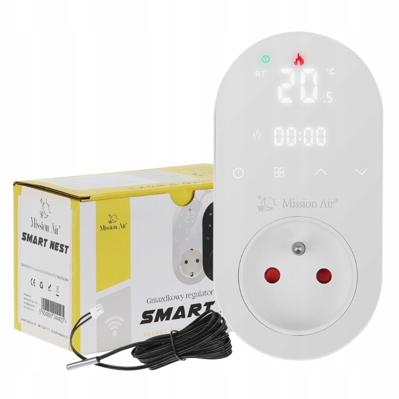 Ena od številnih prednosti programabilnega vtičnega termostata SMART NEST podjetja Mission Air® je možnost oddaljenega upravljanja s pametnim telefonom ali tabličnim računalnikom z operacijskim sistemom iOS ali Android.