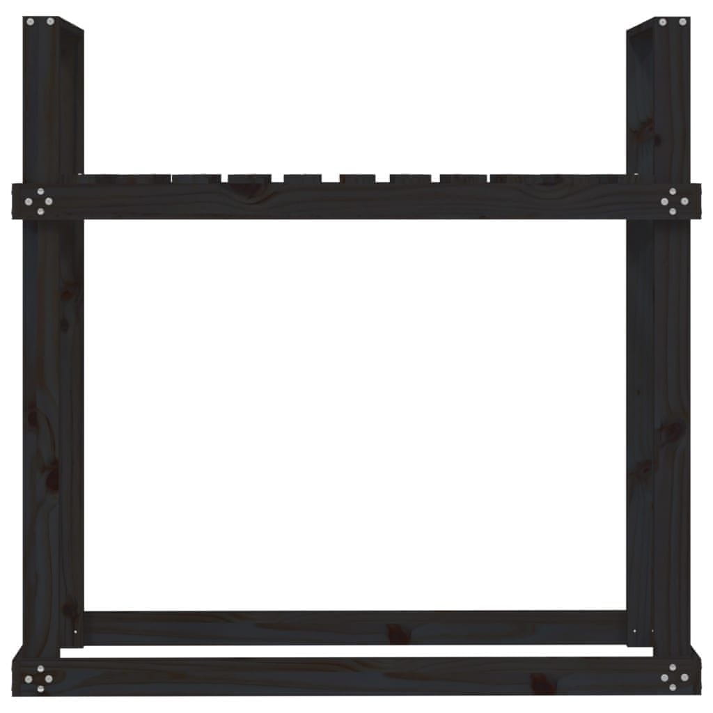 Vidaxl Stojalo za drva črno 110x35x108,5 cm trdna borovina