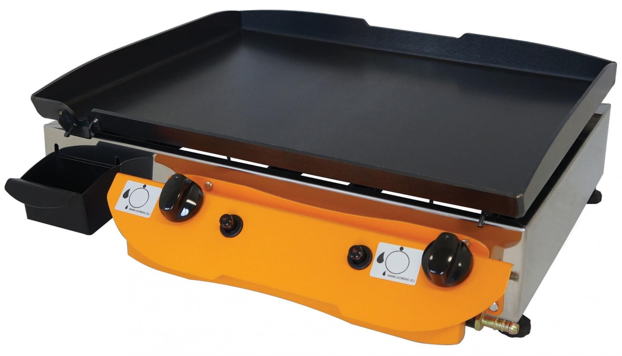 Plinski žar Gorenc Lotus 51 z 10 kW moči in 51 × 40 cm pločevinasto ploščo. Celoten opis