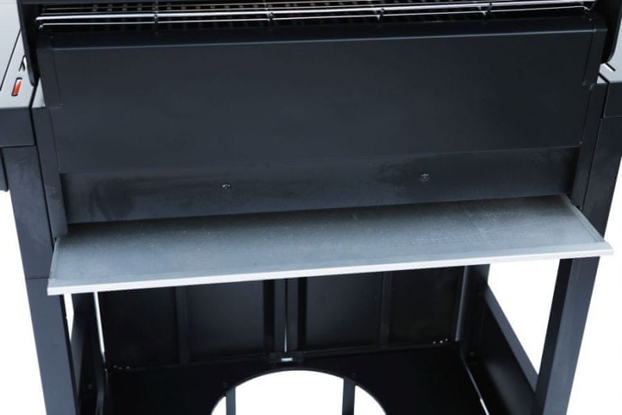 | Dodatno: | 4 kolesa (2 velika + 2 mala z možnostjo zaklepanja), zaščitni pokrov z vgrajenim termometrom, ročaji iz brušenega nerjavečega jekla, držalo za jedilni pribor, stranska mizica, odstranljiva posoda za kapljanje, omarica z režo za plinsko jeklenko 11 kg |