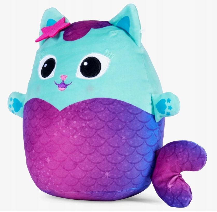 Mehka plišasta mucka ima roza rep v obliki morske deklice s plavutjo in zabavno ovalno obliko. Preprosto se želiš crkljati! In crkljati in stiskati! Ta ljubka mucka iz risanke „Gabi's Cat House“ bo ukradla srce marsikatere deklice!