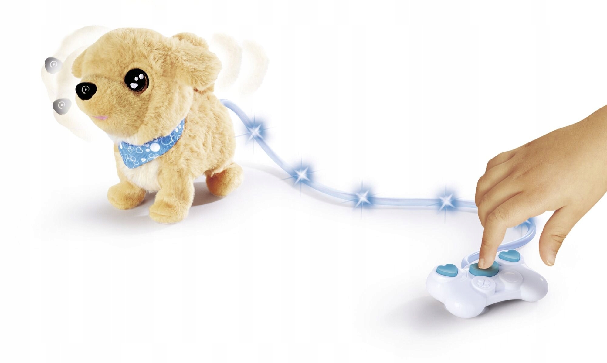 Mladička je mogoče upravljati z daljinskim upravljalnikom. Pes lahko laja, hodi in maha z repom, in njegov povodec sveti .