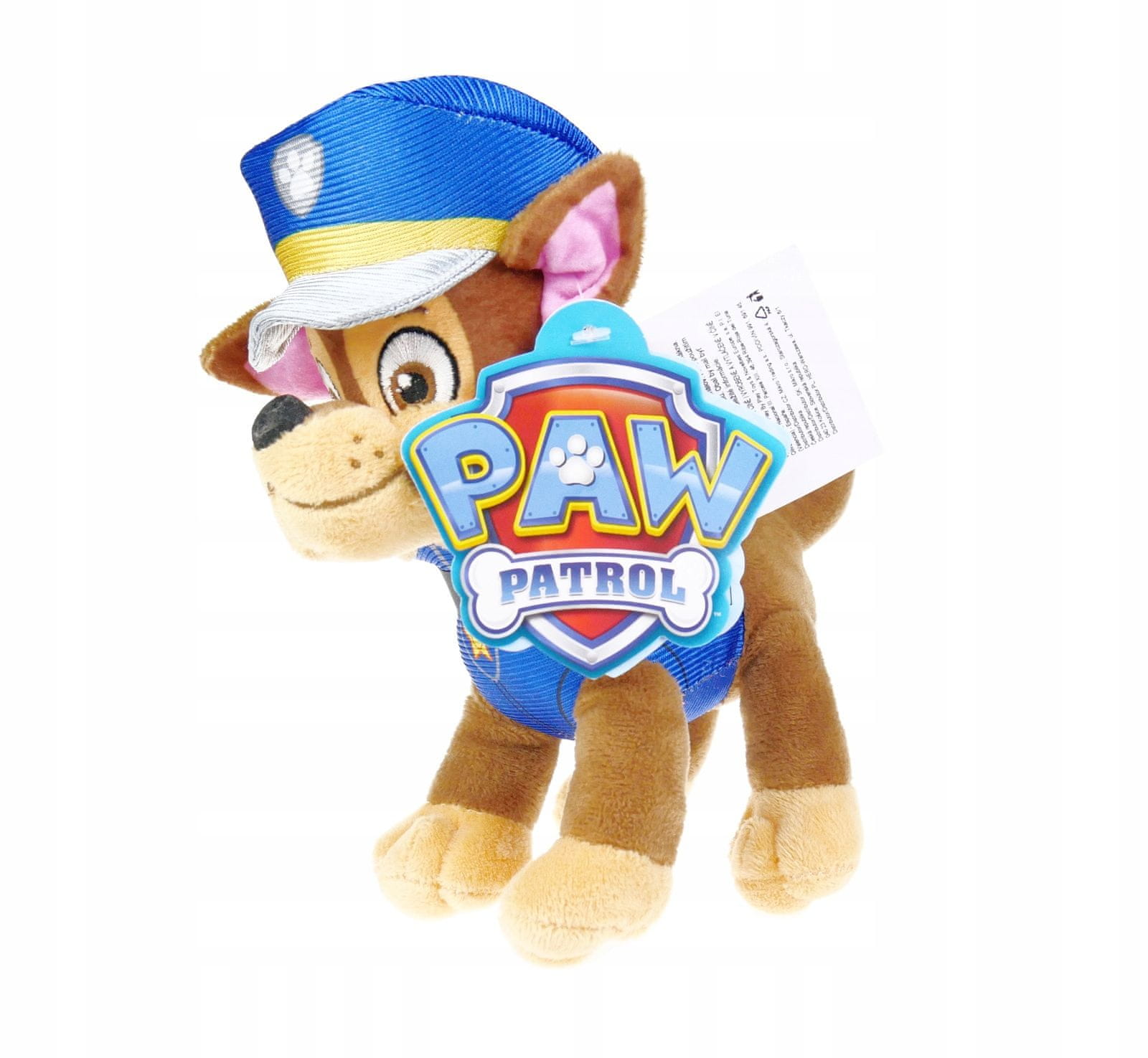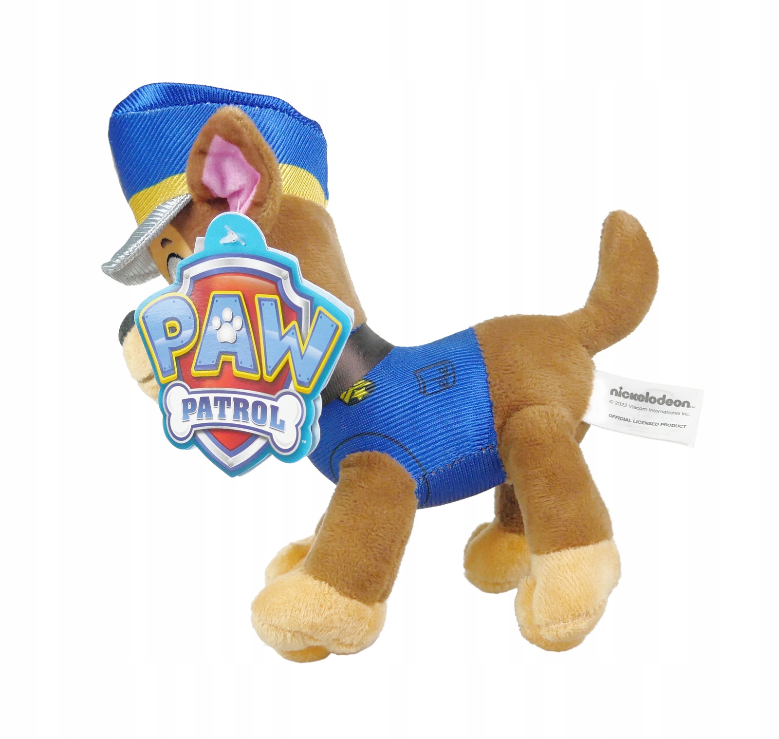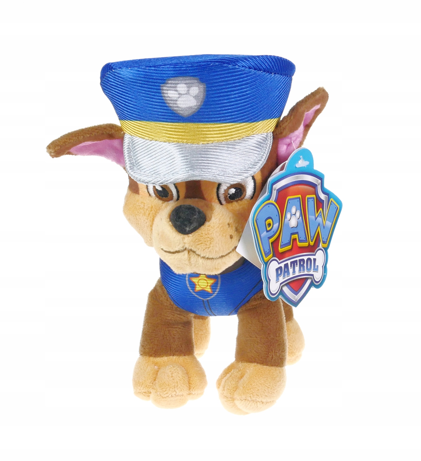 Majhna plišasta igrača, ki prikazuje psa po imenu Chase, lik iz priljubljene otroške risanke „Tačke na patrulji“. Plišasta igrača, ki je videti kot eden od članov ekipe pasjih junakov, je maskota, ki bo zagotovo razveselila vsakega malčka. Popolno darilo za ljubitelja pasje ekipe. Maskota je izdelana iz prijetnega materiala na dotik, skrbno izdelana.