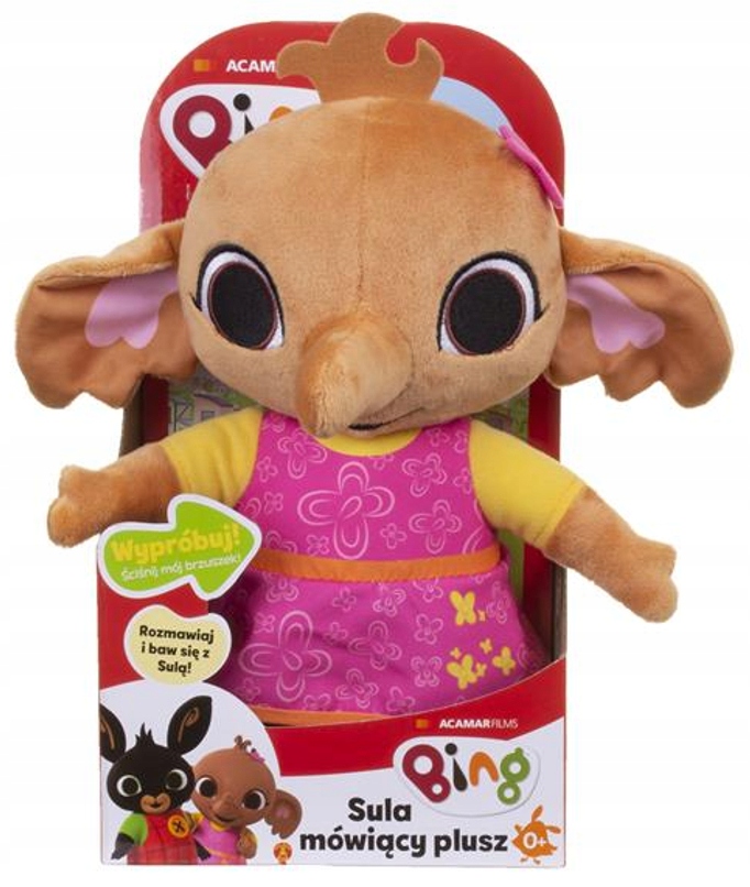 Če je vaš malček ljubitelj animiranih pravljic in je njegova najljubša serija o dogodivščinah zajčka Binga, mu bo ta interaktivna maskota zagotovo všeč na prvi pogled. Igrača prikazuje Sulo, slona, ki je najboljši prijatelj glavnega junaka. Ta plišasta žival bo s svojim videzom in smešnimi zvoki navdušila tako mlajše kot starejše otroke.