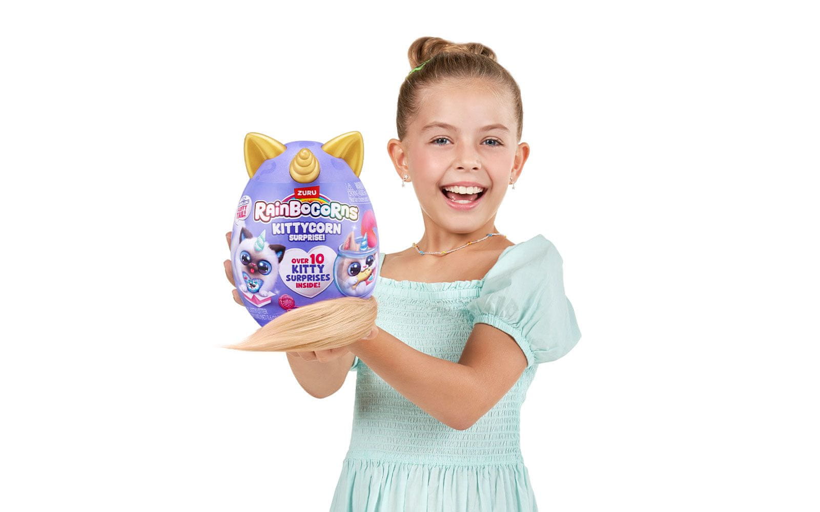 Set vsebuje 1× jajce presenečenja Kittycorn Surprise Egg, 1× Kittycorn plišasto živalico s Peel ‘n’ Reveal Magic Heart srčkom na trebuščku živalice pod katerim se skriva podobica in dolgim kosmatim repkom, 1× Boo-Boocorn Egg majceno jajce, 1× Kittycorn nalepke, 1× Kitty Litter Compound, vodnik za zbiratelje.Na voljo je 7 različnih puhastih ljubljenčkov.Vsaka Kittycorn ima svojo edinstveno Kitty Boo-Boocorn in dodatna presenečenja, ki vas bodo razveselila!Sledite vodniku za zbiratelje, da jih posvojite vse!Odlepite in razkrijte čarobno srce svojega Kittycorna, da razkrijete, kaj obožuje.