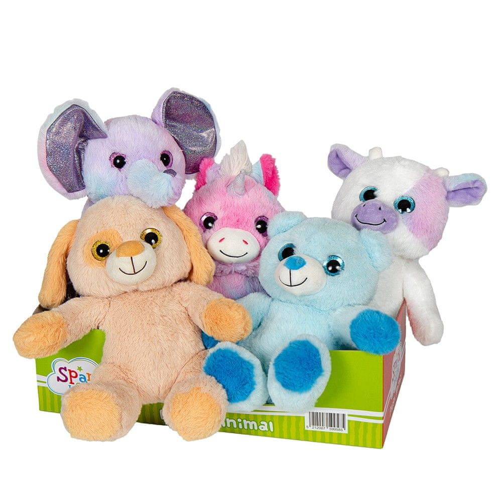 Prikupne plišaste živali z bleščečimi očmi v šestih različicah – pes, slon, medved, samorog, krava in mačka. Izdelane so iz mehkega in visokokakovostnega pliša. Velikost živali je 23 cm.