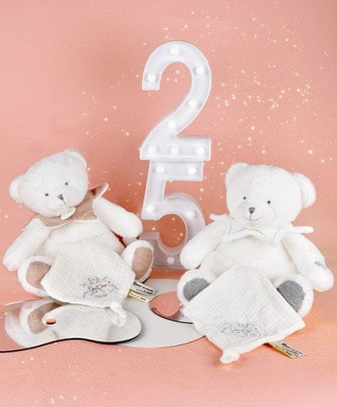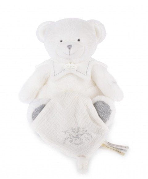 Medvedek je idealno darilo za otroke od rojstva dalje. Medvedek vključuje mehko odejo, ki je odlična za crkljanje in lahko otroku pomaga, da lažje zaspi. Odejo lahko preprosto skrijete v medvedkov trebušček, kar je priročno pri potovanju ali shranjevanju. Okrašena je z Doudoujevimi nežnimi vezeninami in satenastimi trakovi z ljubečimi sporočili v francoščini, zaradi česar bo vsak objem še bolj nežen. Medvedek ima elegantno sivo srce na tački, prikupen bel ovratnik pod vratom in mehke sive tačke, ki mu dajejo mehak in prijazen videz. Z nežnimi, trendovskimi barvami in visokokakovostnimi mehkimi materiali je kot nalašč za majhne otroke, ki se v njem počutijo varno in udobno. Odličen darilni namig, ki bo navdušil in spodbudil čute vašega baby. Operite v kopeli pri 30°. Sušenje na naravni ali nizki temperaturi. Glavne značilnosti: mehak plišasti, vrhunski materialprimeren od rojstvazadovoljuje evropske standarde CEidealen za darilopraktična darilna škatla