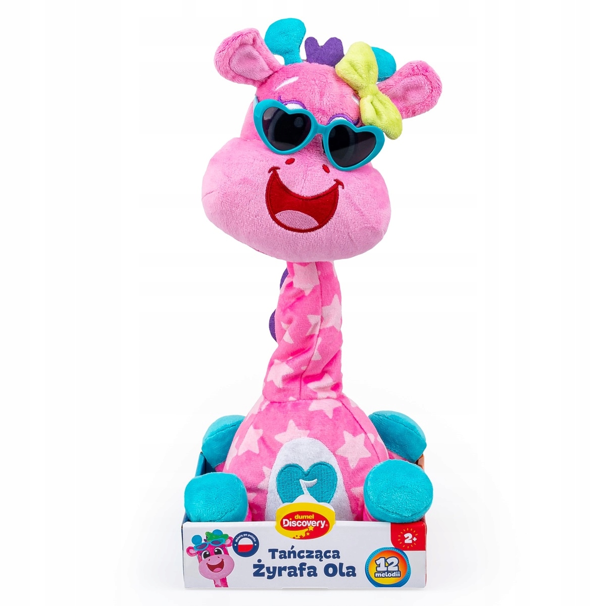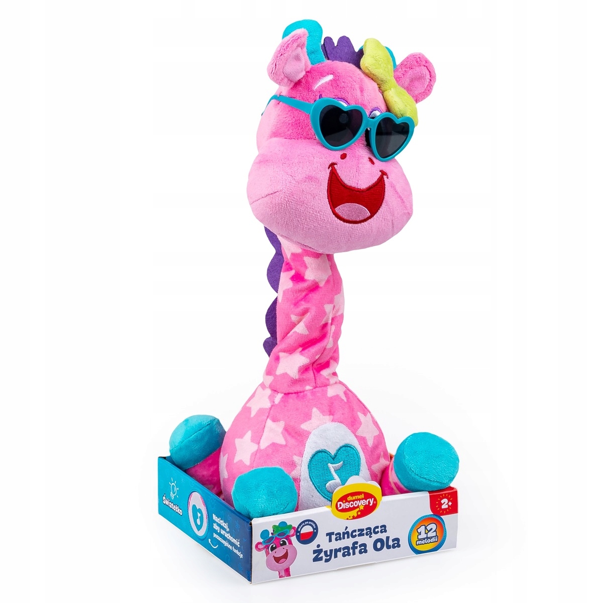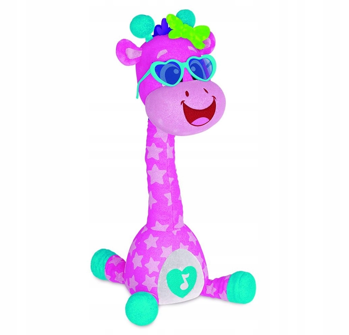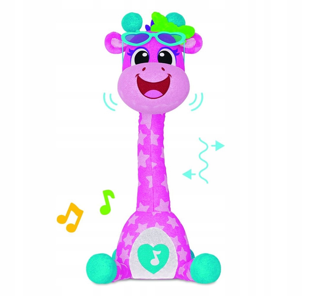 Ta energična žival pozna 12 različnih melodij, ob katerih izvaja zabaven ples in trese vrat v ritmu glasbe. Žirafa je opremljena s svetlečim gumbom v obliki zvezde, ki aktivira zvoke in ples, kar doda še več zabave.