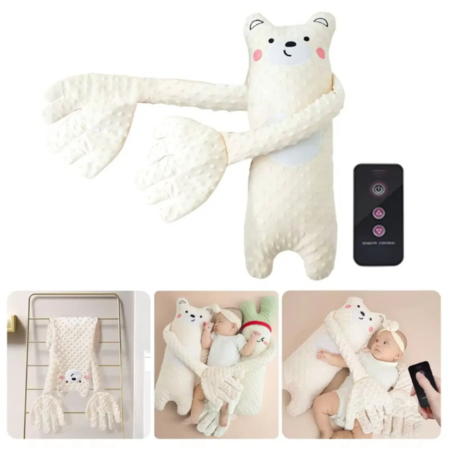 Z mehkim ritmičnim gibanjem ta plišasti medved tolaži vašega malčka kot vaša roka – tako da lahko oba mirno počivata.