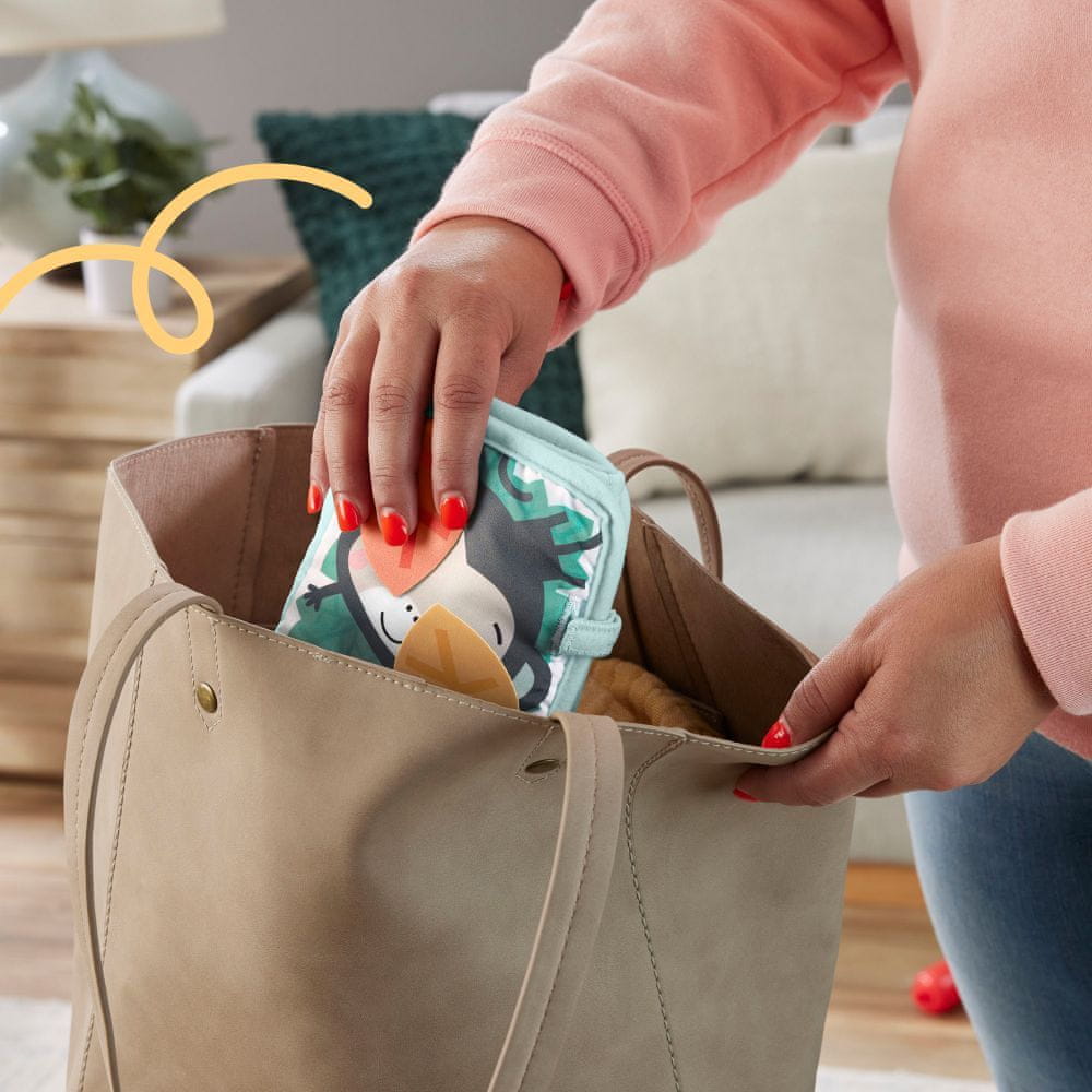 Z mehko knjigo Jungle Animals proizvajalca Fisher-Price se lahko dojenček dotika različnih tekstur, hrešči, se obrača, si ogleduje obraz v ogledalu in raziskuje. 4 dvostranske plošče te mehke knjige s pisanimi in kontrastnimi vzorci pomagajo pri otrokovem najzgodnejšem razvoju vida. Leporelo ima zanke na velcro za pritrditev na npr. igrala.