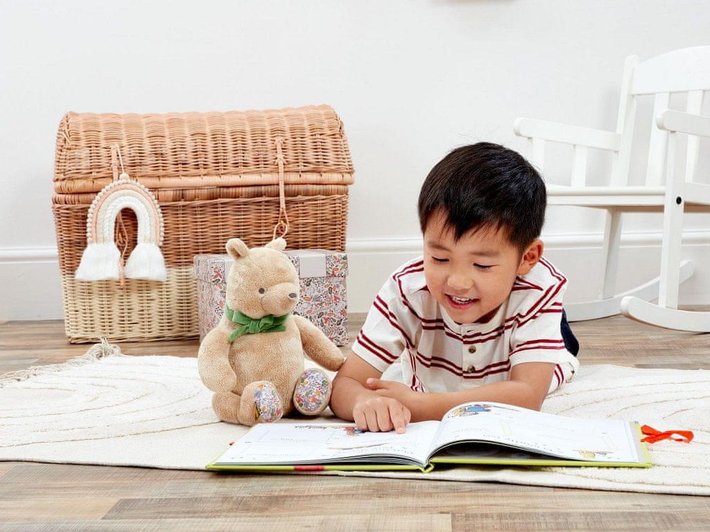 Sklenite prijateljstvo, ki bo trajalo vse življenje. Ta čudovit medvedek je popoln prvi spremljevalec za dojenčka. Klasična plišasta žival, ki oživlja muhasto pripovedovanje zgodb A. A. Milneja iz knjige Hundred Acre Wood. Medvedek ima okoli vratu zavezan eleganten zelen šal z pentljo, njegove tačke pa imajo čudovit vzorec, navdihnjen z gozdom. Medvedek je izdelan iz izjemno mehkih tkanin in trajnostnih materialov. Polnila so izdelana iz recikliranih plastenk in reciklirane plišaste tkanine. Prikupna plišasta igrača Winnie the Pooh je popoln prijeten prijatelj in je tudi odlično darilo za novorojenčke. Priložena je v lepo ilustrirani darilni škatli, na katero je mogoče napisati posvetilo. Glavne značilnosti: primeren od rojstvaizdelan iz trajnostnih materialovizdelan v celoti iz recikliranega materialapopolno darilo za dojenčke