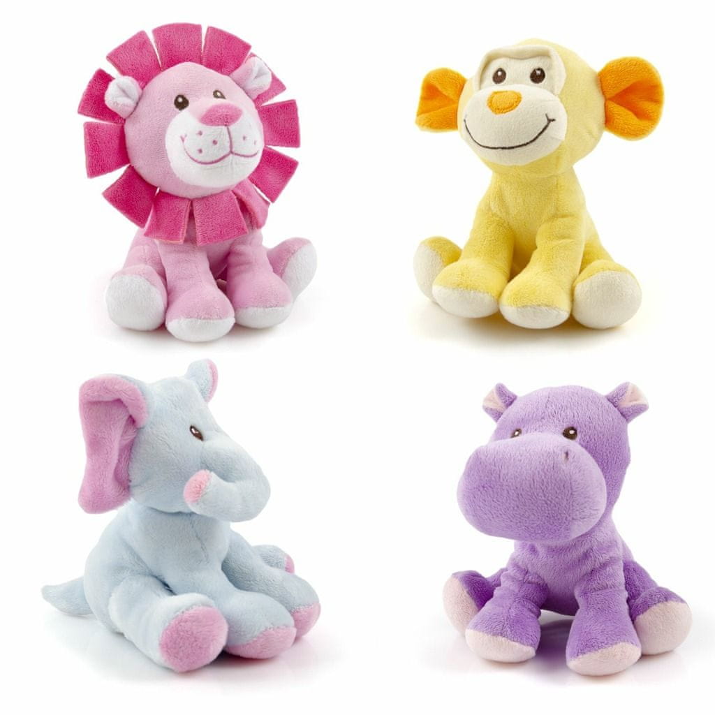 Ponosne živali iz džungle 15 cm – v štirih barvah – vijolični hrošč, rumena opica, roza lev in modri slon.