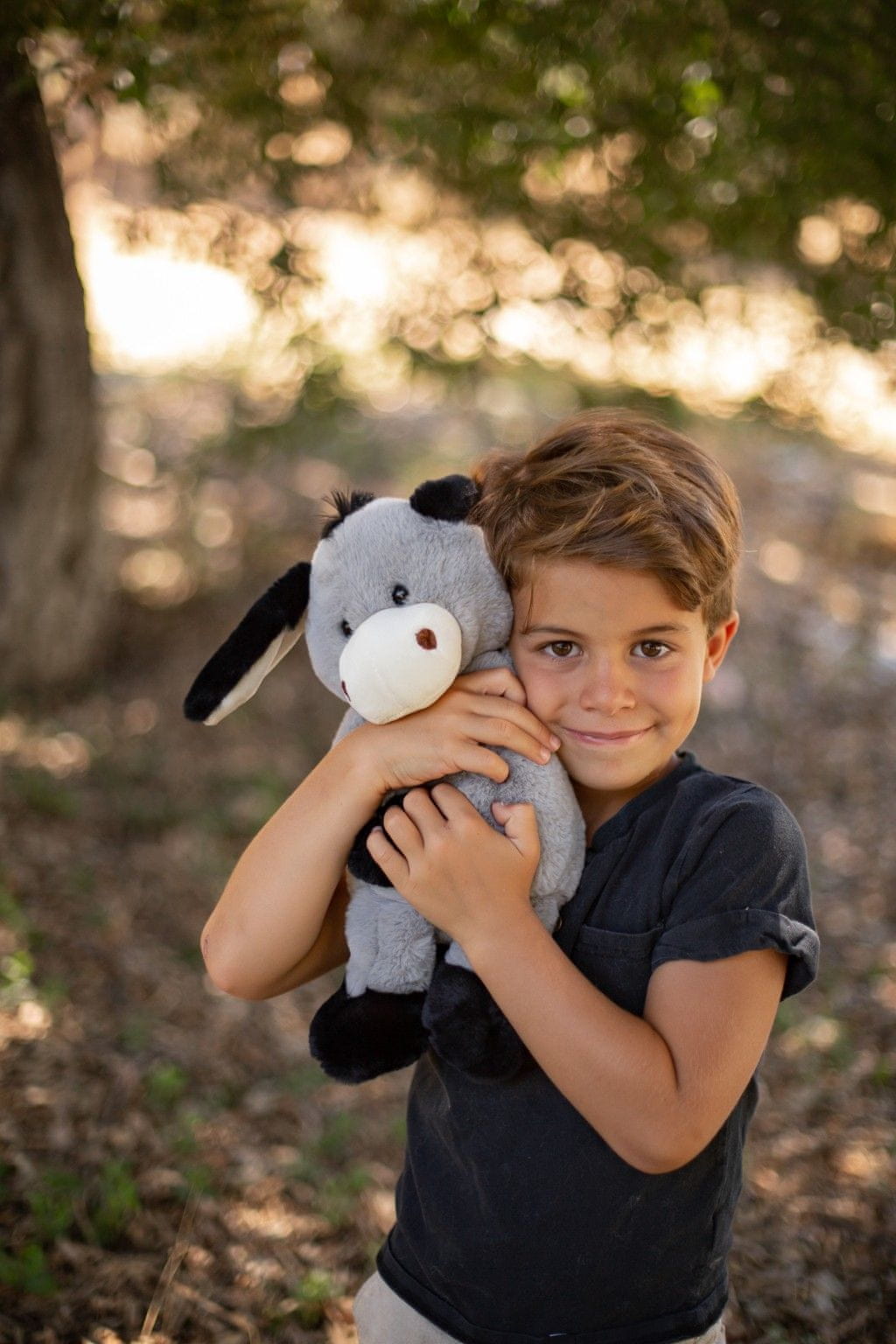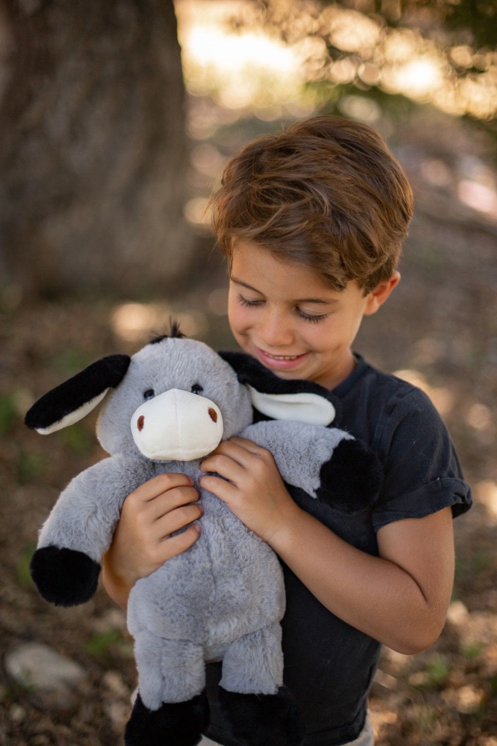 Prikupen plišasti osliček, velik 40 cm, že na prvi pogled navduši s svojim prikupnim izrazom in mehkim kožuščkom. Celoten opis