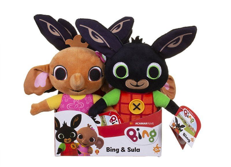 Plišasti liki iz priljubljene pravljice Bing Bunny. To so junaki, ki jih otroci obožujejo. Katerega boste izbrali? Zajček Bing s črnim kožuščkom, zelenimi očmi in koničastimi ušesi, oblečen v zeleno majico in rdeč kombinezon, okrašen z rumenim gumbom? Ali pa bo to slonica Sula, oblečena v rožnato obleko, zlate čevlje in z metuljem na glavi? Ali pa bo to Pando v beli majici in rumenih kratkih hlačah? Plišaste igrače so izdelane iz visokokakovostnega materiala.