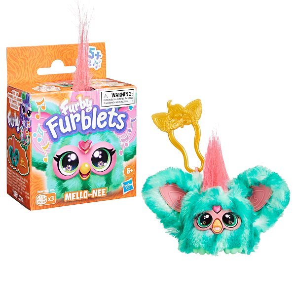 Pritisnite gumb za srce, da slišite, kako Furby Furblet igra svoje edinstvene melodije v rock slogu. Mali prikupni prijatelji Furby z neverjetno izrazitimi osebnostmi! Vsak od šestih Furbletov ima edinstven glas in značaj, ki se ujema z glasbenim slogom, ki ga predstavlja. Furbleti imajo več kot 45 zvočnih odzivov in se lahko harmonizirajo, skupaj pojejo pesmi in sodelujejo z veliko igračo Furby! Pliš je visok 5 cm. Igrača deluje na 3 baterije LR44 (priložene). Assort je naključna mešanica modelov. Na izbor ni mogoče vplivati. Dimenzije paketa: 12,7 × 9,5 × 5,3 cm. Starost: 6+
