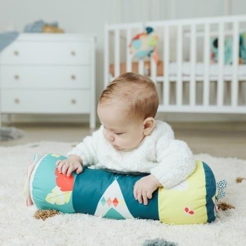 Podpora motoriki: Z gibanjem po valju otrok krepi zgornje in spodnje okončine, vadi koordinacijo in pridobiva nadzor nad gibi, kar je osnova za uspešno plazenje.