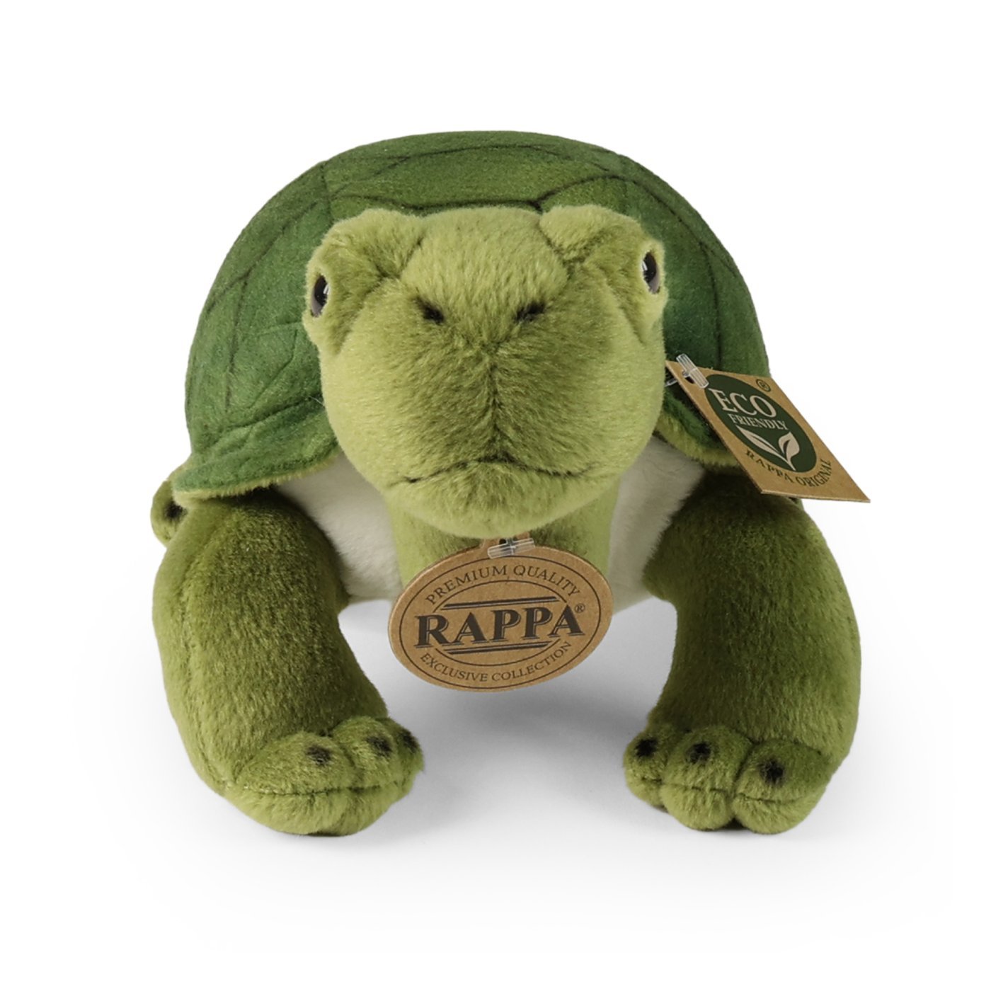 Plišasta želva meri 25 cm in zaradi najkakovostnejših materialov spada v ekskluzivno zbirko plišastih igrač Rappa. Poleg tega je zaradi ročne izdelave vsakega kosa videti realistična. Zakaj oznaka ECO-FRIENDLY? Podjetje Rappa se zaveda vseh vplivov na okolje, zato se osredotoča na trajnost in čim manjšo uporabo plastike. Zato je polnilo igrač narejeno iz recikliranih materialov, zlasti steklenic PET. Vendar je slednja popolnoma neškodljiva in primerna za otroke od rojstva dalje. Zabaven podatek: Ali ste vedeli, da so kopenske želve med najdlje živečimi vretenčarji na svetu?
