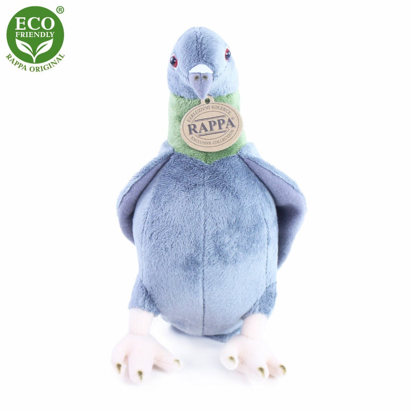 Krasen plišasti golob ne sme manjkati v nobeni otroški sobi! Golob, velik 23 cm, je izdelan iz visokokakovostnega pliša in je del ekskluzivne zbirke plišastih igrač. Glavne značilnosti. Polnilo plišaste igrače je izdelano iz recikliranih steklenic PET. Ta material je popolnoma varen, na otip se ne razlikuje od običajnega polnila in je v celoti certificiran za varnost tudi najmlajših. Odločili smo se za zeleno pot, ki najmanj obremenjuje okolje – za EKOLOŠKO pot.
