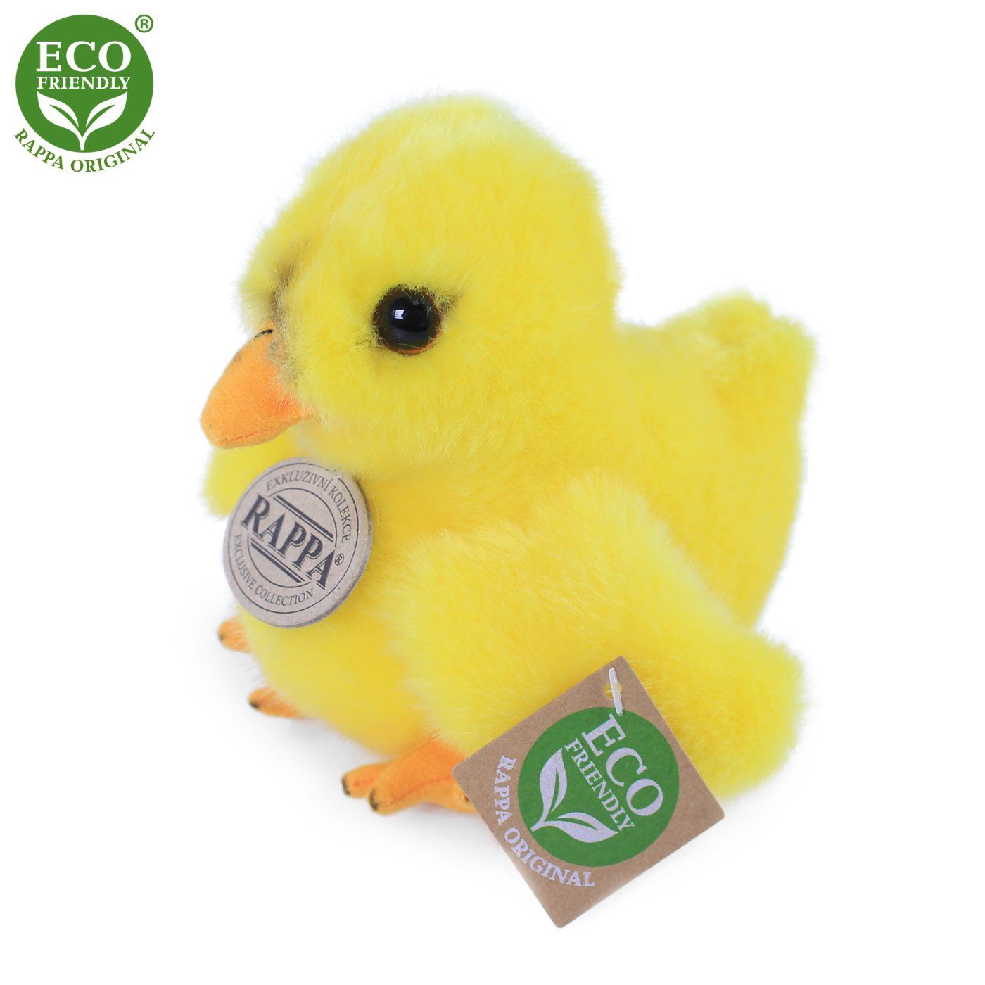 Prikupen plišast piščanček v velikosti 14 cm je izdelan iz ekskluzivnega visokokakovostnega pliša in je del ekskluzivne zbirke plišastih igrač. Glavne značilnosti: realistična žival ročno izdelan visokokakovosten pliš Ekološko prijazno polnilo Kaj pomeni EKOLOŠKO PRIJAZNO? Plišasta igrača je narejena iz recikliranih plastenk PET. Ta material je popolnoma varen, na otip se ne razlikuje od standardnega polnila in je v celoti certificiran za varnost tudi najmlajših. Odločili smo se za zeleno pot, ki kar najmanj obremenjuje okolje – za EKO-prijazno pot.