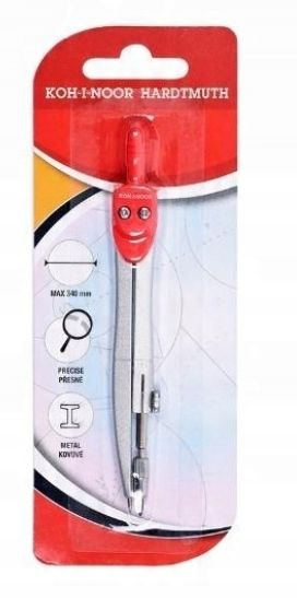 Šolski kompas, zasnovan za risanje krogov s premerom do 340 mm. Opremljen je z mino premera 2 mm.