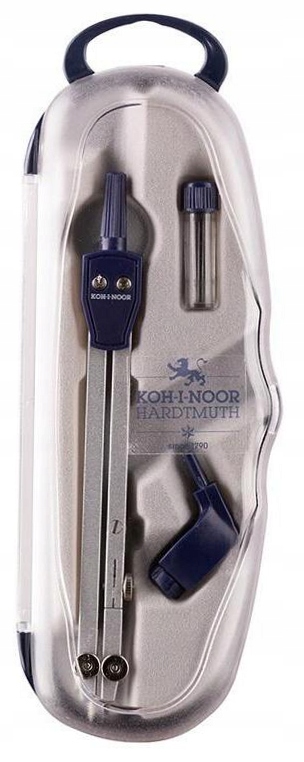Komplet, zasnovan za pisarniške in šolske namene. Idealen za risanje natančnih krogov in lokov zaradi gladke in stabilne nastavitve. Izdelano iz visokokakovostne kovine: kompas z zamenljivim držalom za svinčnik in rezervnim ročajem je pakiran v plastični škatli.