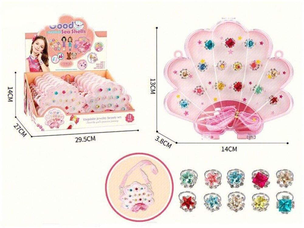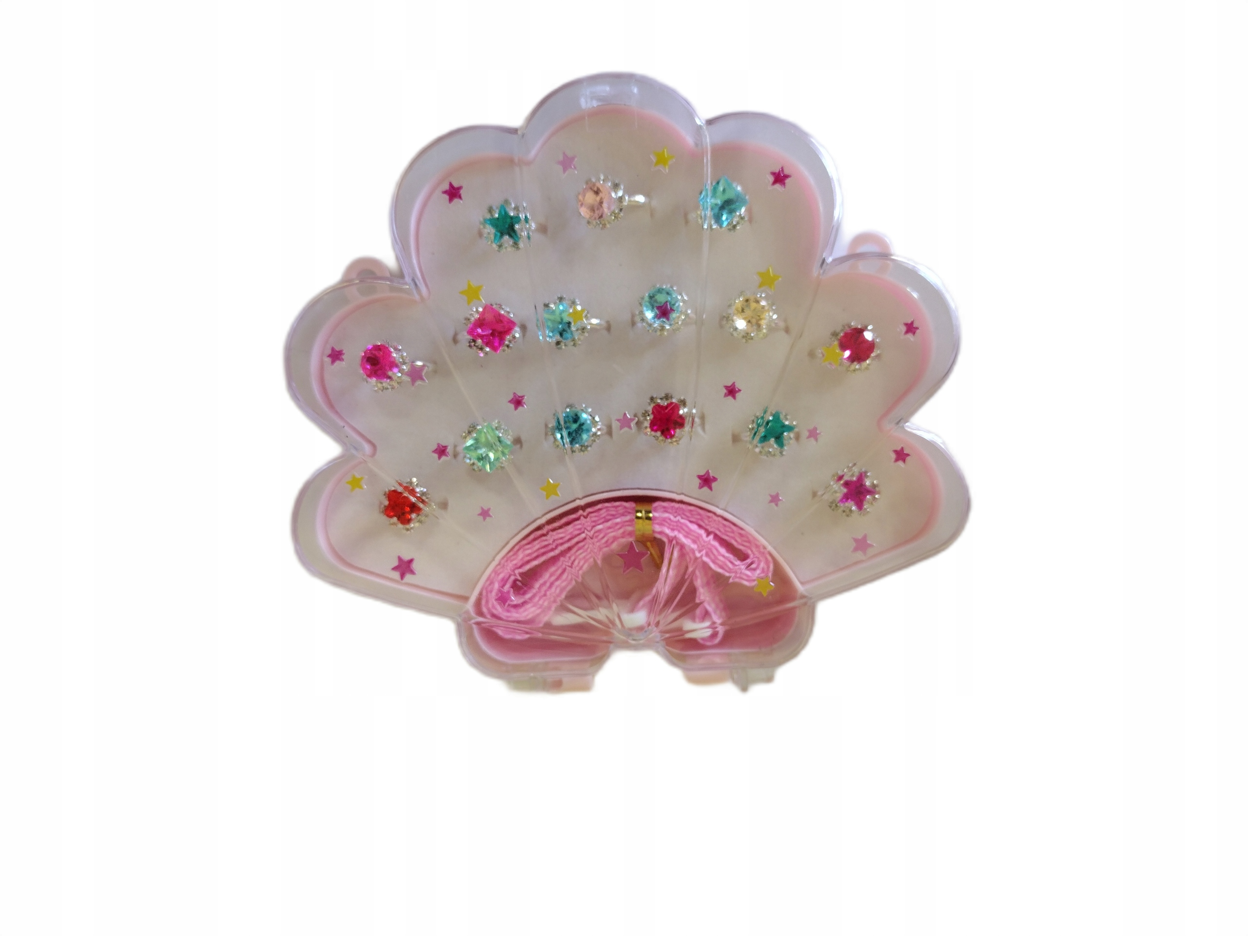 KOMPLET 15 PRSTANOV V OKRASNI ŠKATLICI Z LUŠČICAMI