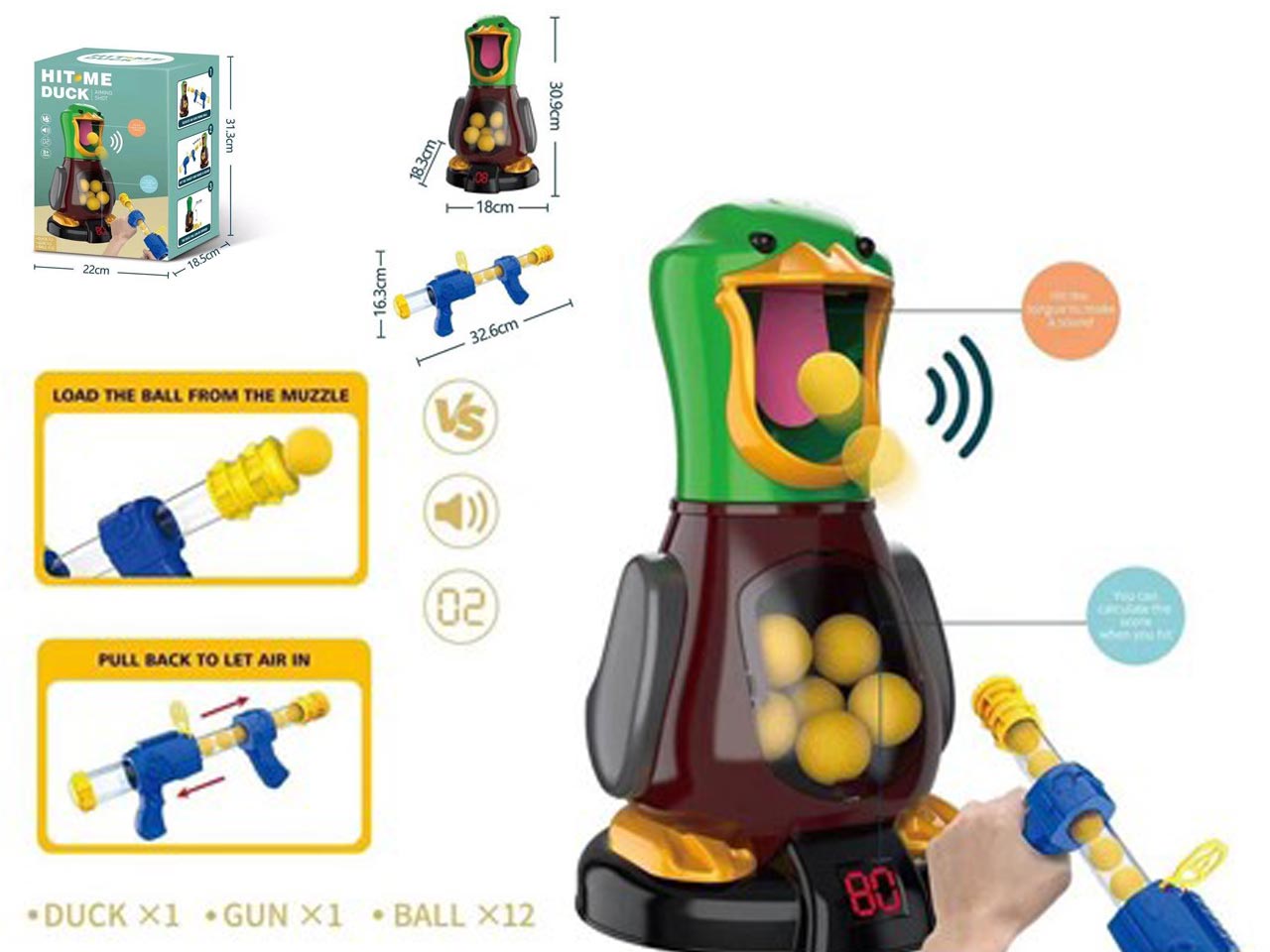 Lačna raca je glavna tarča te strelske igre, ki šteje točke za vsak zadetek. Interaktivno štetje zadetkov na LCD-zaslonu doda navdušenje in spodbuja tekmovanje.