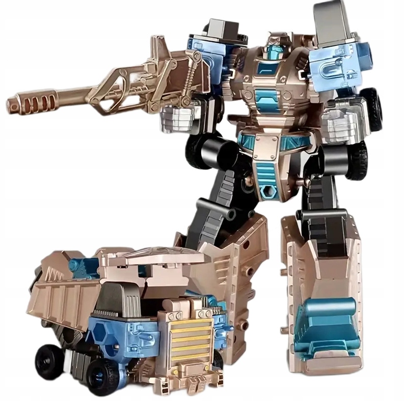 Le nekaj preprostih korakov za preobrazbo vašega robota v bojni avto ali obratno. Zlato-moder model, izdelan iz trpežne plastike.