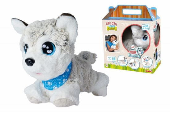 Interaktivni plišasti pes CCL Happy Husky lahko posluša kot pravi! Odziva se na 12 ukazov v češčini (vprašaj, poljubi, stoj, glej, pleši, sedi, nazaj, dober pes, poljubi, poj, piškotek, kuža, muca) in izdaja 60 različnih zvokov. Velikost 30 cm.