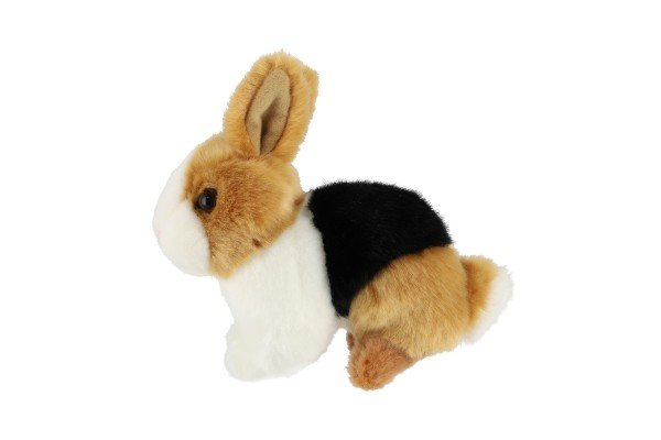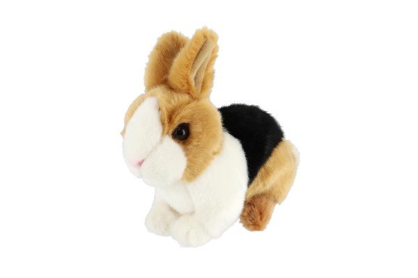 Plišasti zajec 15×17 cm v rjavo-črno-beli barvi je ljubka in mehka igrača, idealna za otroke od rojstva dalje. Celoten opis