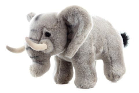 Plišasti slon z dimenzijami 30×12×17 cm. Celoten opis
