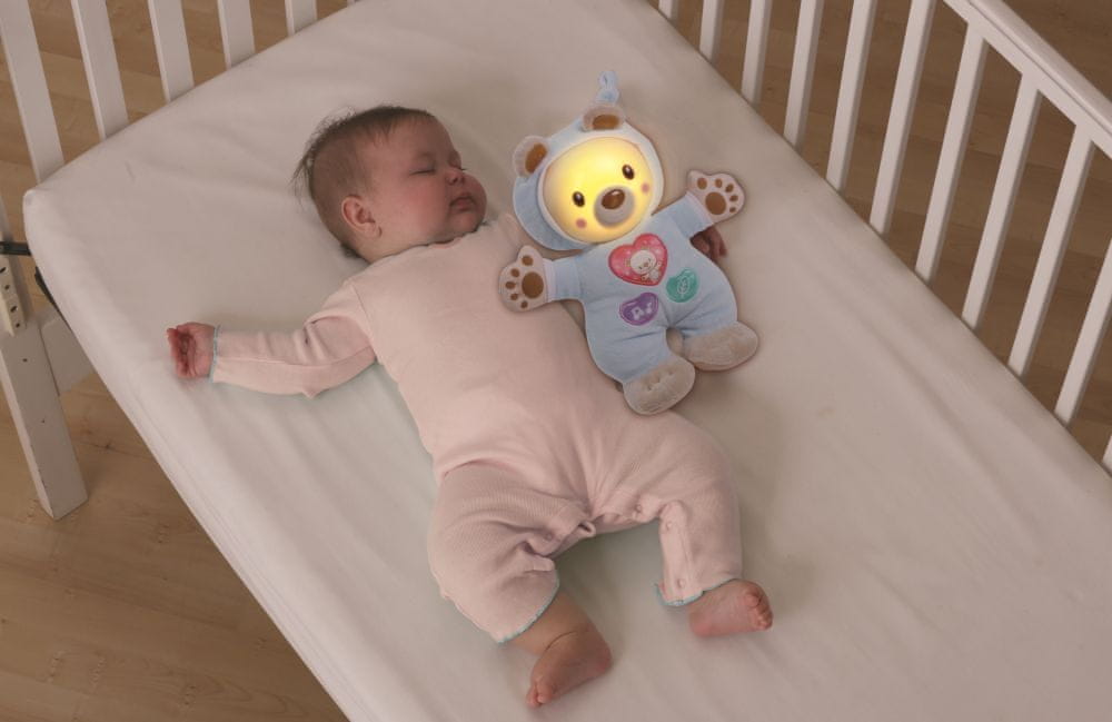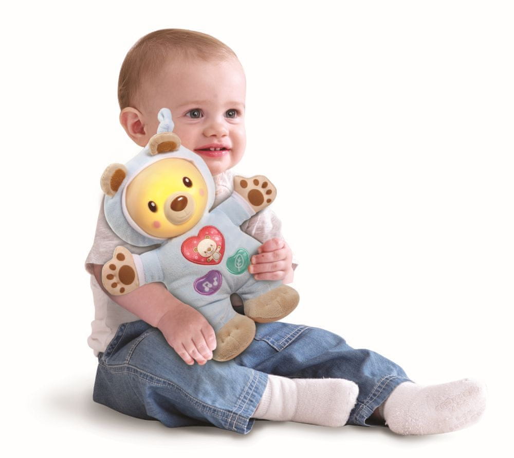 Medvedek je prikupna hišna ljubljenka, namenjena otrokom od rojstva dalje. Prijetna zatemnjena svetloba in prijazni zvoki, besede, stavki in melodije dajejo otroku občutek varnosti. Mehak in prijeten svetleči medvedek bo otroku pomagal, da se umiri in zaspi. S pritiskom na gumbe iz blaga lahko slišite različne prikupne fraze, glasbene zvoke ali zvoke narave. Medvedek razvija motorične sposobnosti, hkrati pa spodbuja otrokovo slušno zaznavanje. Vsebuje več kot 70 pesmi, melodij, zvokov in fraz, ki spodbujajo dojenčkove prve besede. Melodije in zvoki so za dojenčka pomirjujoči, prav tako tudi počasi ugašajoča svetloba. S časovnikom lahko nastavite trajanje melodij, zvokov in petja (do 30 minut). Po enostavni odstranitvi elektronskega modula lahko Hajan tudi operete. Primeren za otroke od 0 mesecev