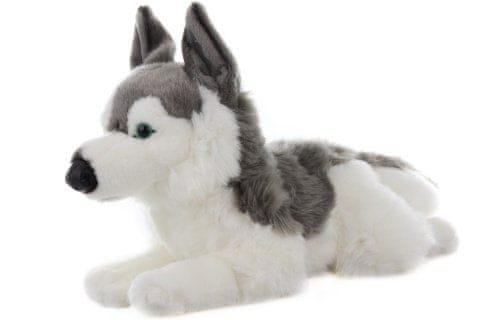Plišasti haski meri približno 43 × 23 × 15 cm. Celoten opis