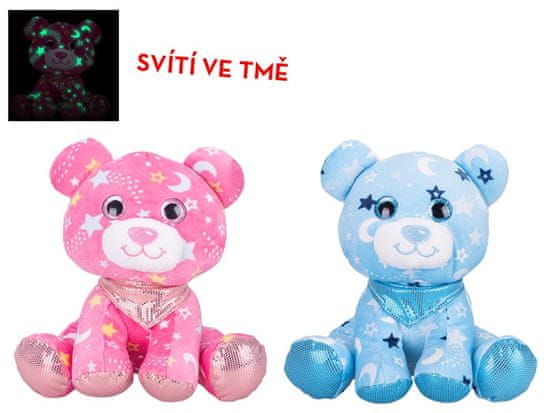 Medvedek 20 cm s šalom, ki sveti v temi - mešanica barv (modra, roza)