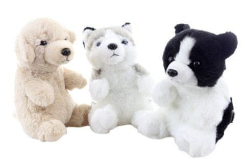 Plišasti pes z dimenzijami približno 17×13×10 cm. 3 vrste – dobavljamo glede na razpoložljivost na zalogi. Starost 0+