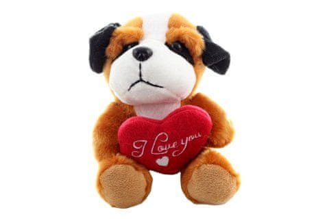 Plišasti pes s srcem. Dimenzije 10×14×10 cm. Celoten opis