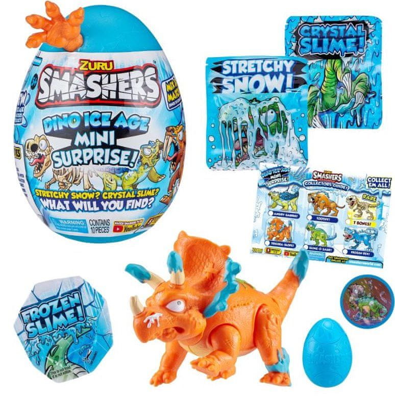 1 jajce 1 mini jajce Smashers 1 dinozaver za sestavljanje 1 gibljiva masa 1 sluz 1 zamrznjen sluz 1 nalepka