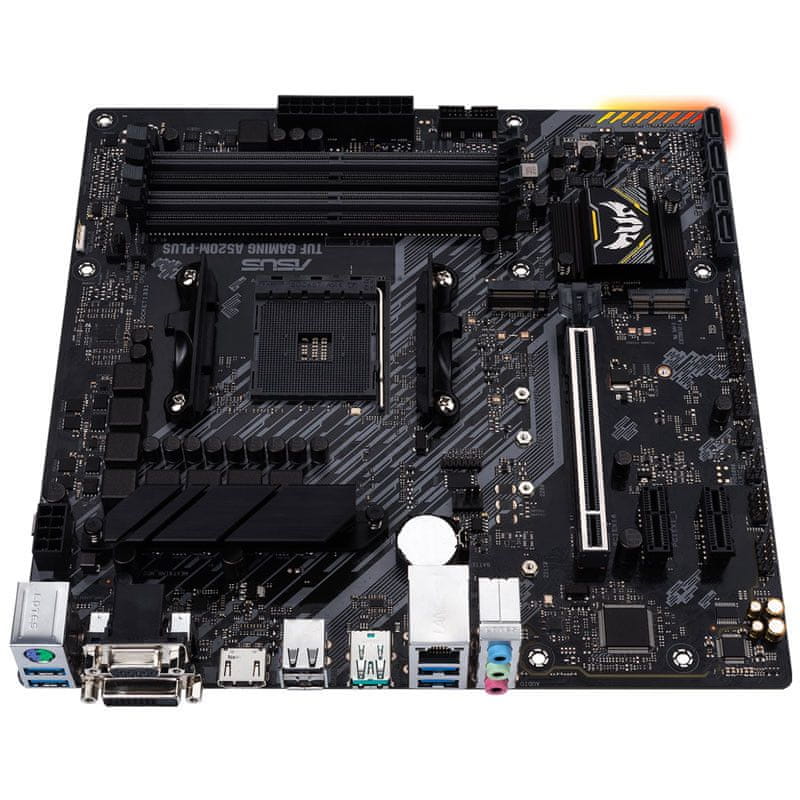 Osnovna plošča TUF Gaming A520M-Plus s podnožjem AM4 in veznim naborom AMD A520 je pripravljena na AMD Ryzen serije 5000, 4000 G in 3000. Opremljena pa je tudi z izjemno hitro povezljivostjo s podporo za M.2, 1 Gb LAN in USB 3.2 Gen 1 tipa A. Stojno opremo ščiti zanesljiva 5X Protection III.