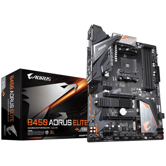 Osnovna plošča B450 Aorus Elite je del serije visoko kakovostnih in zmogljivih računalniških komponent Aorus proizvajalca Gigabyte. Plošča je izdelana posebej za igralce iger in tudi za tiste, ki želijo zmogljiv in zanesljiv računalniški sistem. Ponaša se s podnožjem AM4, zato je združljiva z zmogljivimi AMD Ryzen procesorji 1. in 2. generacije. Podpora za DDR4 sistemski pomnilnik omogoča vgradnjo zmogljivega pomnilnika do skupne kapacitete kar 64 GB.