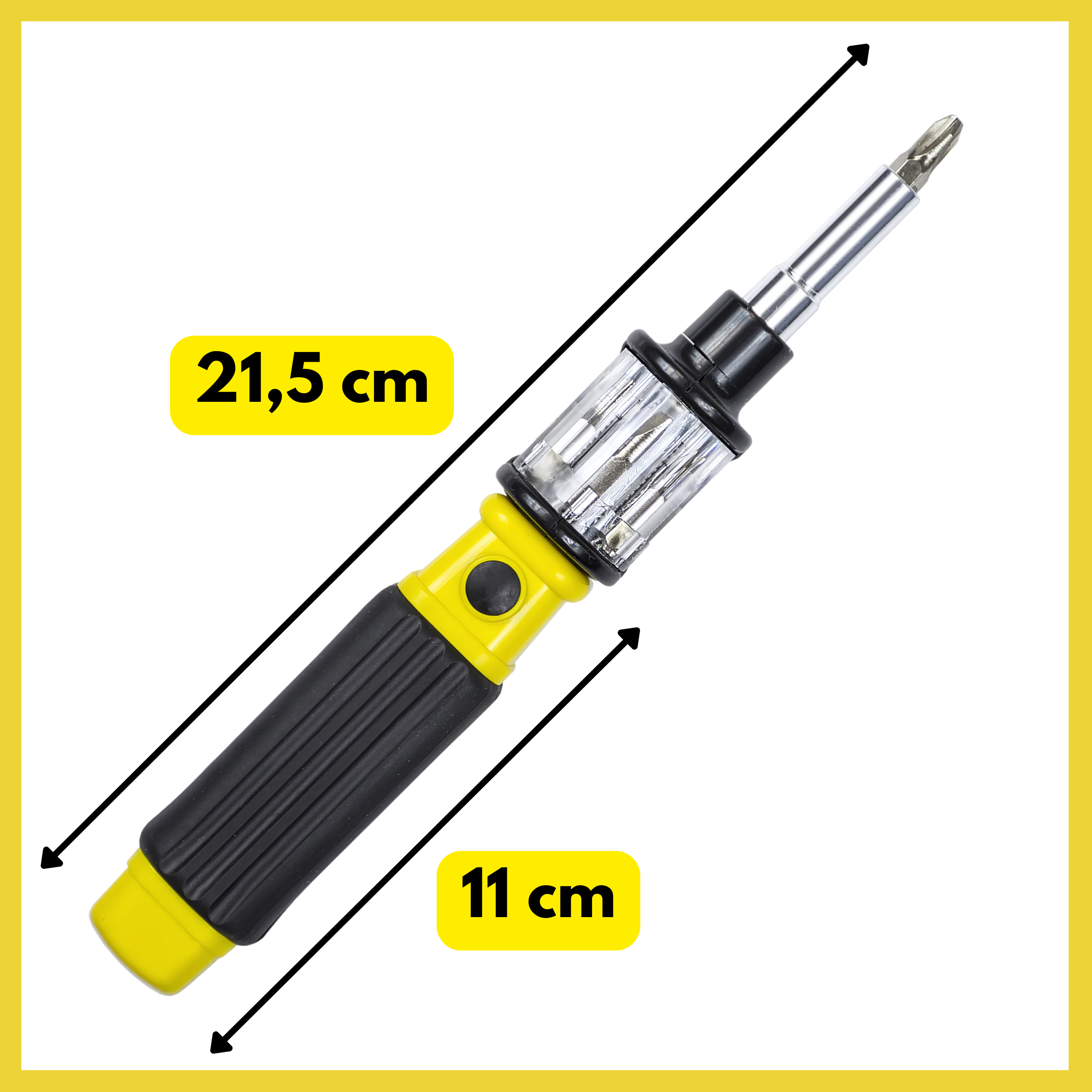 Kompaktne dimenzije (215 × 110 mm) našega izvijača pomenijo, da ga lahko enostavno shranite v avtomobilu, garaži ali škatli z orodjem.