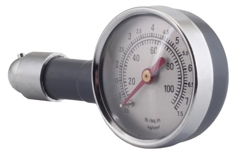 • profesionalni popolnoma kovinski merilnik tlaka v pnevmatikah in univerzalni konec, primeren za uporabo z vsemi običajnimi tipi ventilov z merilnim območjem 0–7,5 bar ali 0–105PSI.