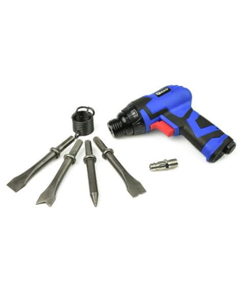 • Poraba zraka: 113 l/min • Frekvenca udarcev: 4500 utripov/min. • Delovni tlak: 6,3 bara (0,63 MPa) • Priključek za zrak: 1/4” (standardno) • Komplet vsebuje: 4 dleta/konice