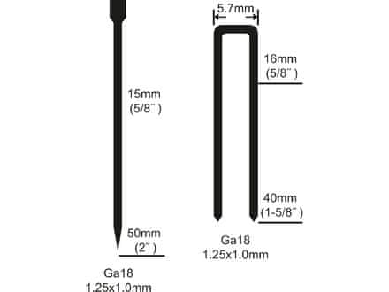 Znamka:</Ta pnevmatska žebljarka/sklepač je namenjena streljanju pritrdilnih žebljev s premerom 1 mm in dolžine od 15 mm do 50 mm ter sponk s premerom 1 mm in dolžine od 16 mm do 40 mm. Pribijalec/spenjač je namenjen pritrjevanju lesenih in lesu podobnih materialov ter pritrjevanju tkanin, folij, ponjav, plastike, usnja, kartona, dekorativnih in izolacijskih materialov itd. na leseno podlago ali lesu podoben material s pomočjo žebljev in sponk. Pribijalec/spenjač je zasnovan tako, da ga poganja stisnjen zrak, ki ga dovaja ustrezen kompresor ali drug vir stisnjenega zraka.