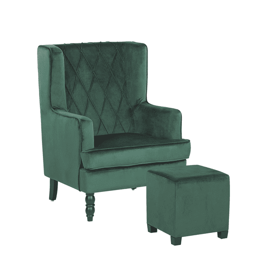 Beliani Zeleni žametni fotelj z naslonom za noge SANDSET
