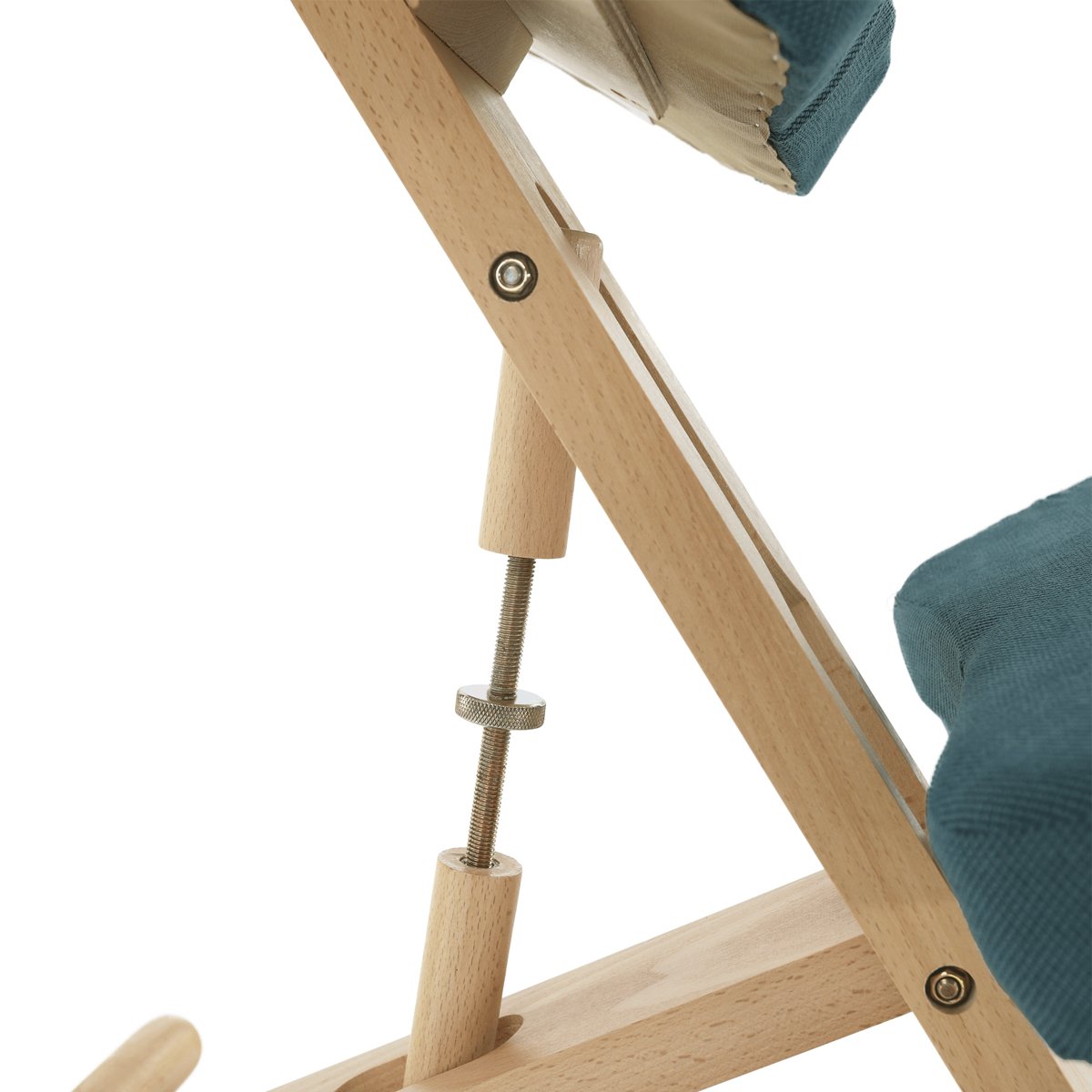 Klečalnik je izdelan iz visokokakovostnega blaga in masivne bukovine, kar mu zagotavlja dolgo življenjsko dobo in odpornost proti obrabi. Njegova največja obremenitev je 100 kg, zato ga lahko uporablja vsak. Sedež je širok 40 cm in globok 30 cm, kar zagotavlja dovolj prostora za udobno sedenje.