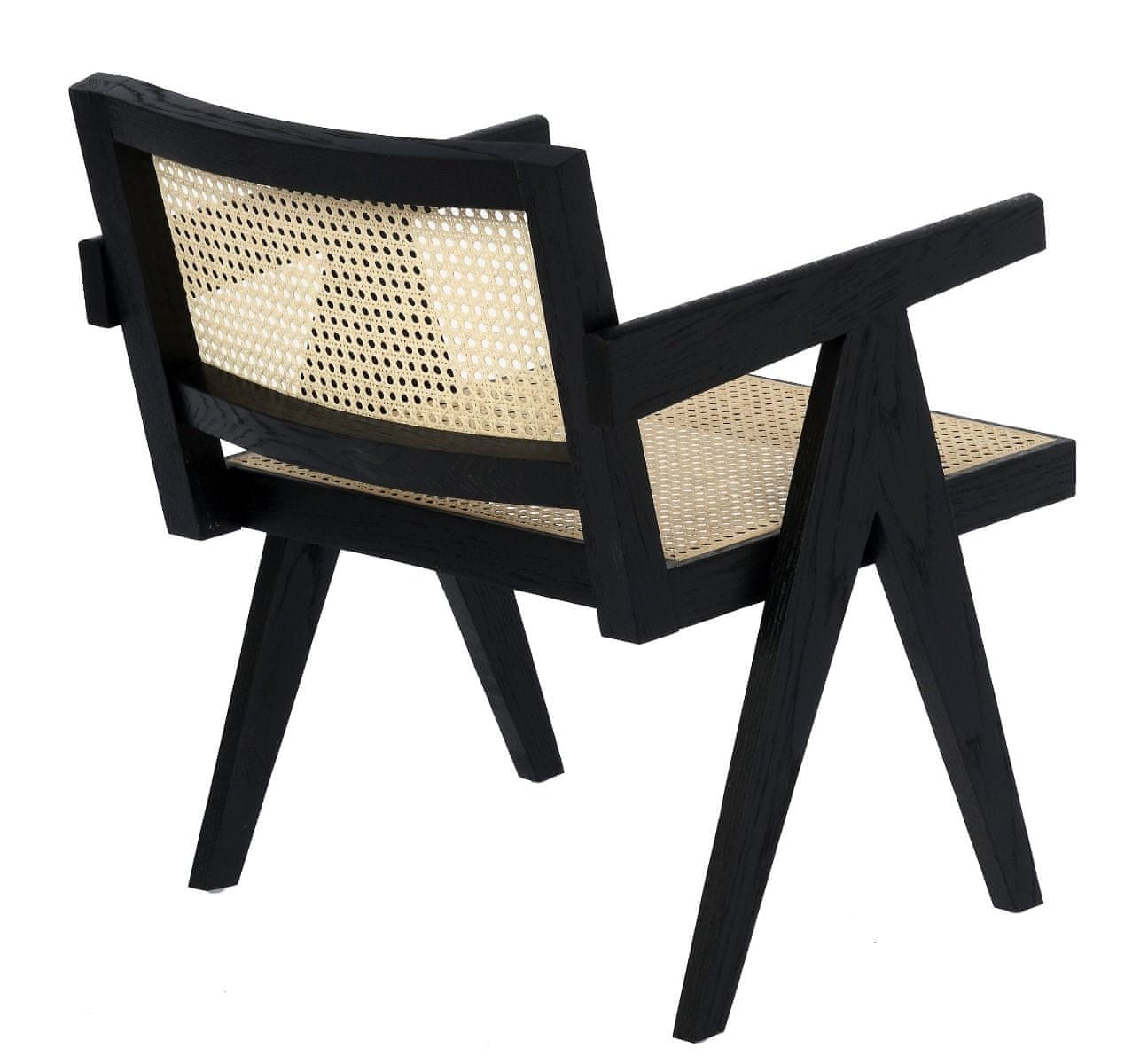FOTELJ MATISSE DIMENZIJE: 57X71X72CM BARVA: ČRNA, NAURALNA LESENA KONSTRUKCIJA HRAST OGLENO SIVA, SEDEŽ IN NASLONJALO FRANCOSKI PLETENI RATAN NARAVNI