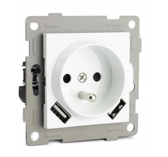 Najpomembnejše informacije: cena je samo za vtičnico visoka kakovost izdelave. vtičnica se prilega škatli fi60. Tehnični podatki: napajanje – 110/250V 2× USB: DC: 5V 1A; 2,1A največji tok – 16 A tip – enostaven material – plastika, kov barva – bela dimenzije – 7,3 × 7,3 razred zaščite pred vdor Celoten opis
