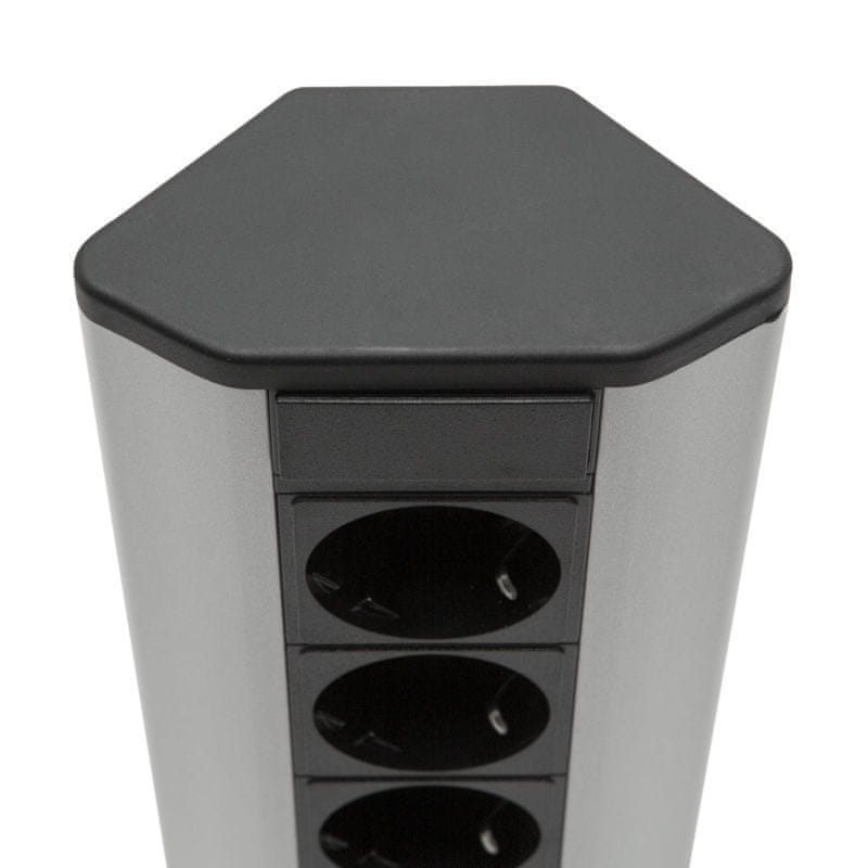 Zahvaljujoč temu kotnemu razdelilniku lahko prihranite prostor na kateri koli površini. Idealen je za kuhinje, sobe, pisarne in vsepovsod, kjer ni možna izgradnja električnega omrežja ali vtičnice. Zahvaljujoč vgrajenim USB priključkom je polnjenje mobilnih naprav enostavno. Tako se lahko izognete krušenju sten ali rezanju delovnih miz ali pohištvenih plošč. Kotni razdelilnik prihrani prostor na stenski površini, zato nad kuhinjskim pultom ostane več mest za pritrditev in obešanje nožev, kuhinjskih pripomočkov.